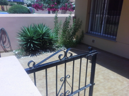 Дом с садом. 3 спальни, 2 санузла, солярий на 3-ем этаже. Кондиционеры, интернет и др. Дом находиться в закрытой урбанизации с бассейном.