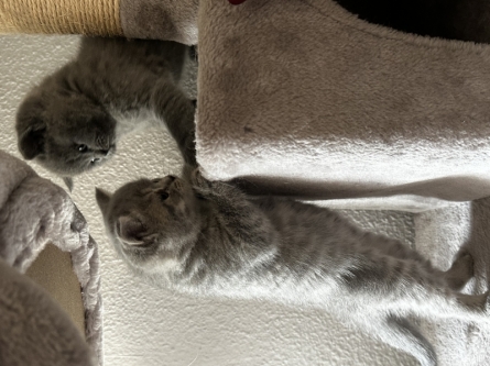 Предпродажная подготовка. Шотландская вислоухая и Британец. Сегодня им ровно 1,5 месяца. К лотку приучены. Питаются самостоятельно. Еще не привиты. Имя сами присвоите при регистрации. По договоренности доставим в пределах 400 км от Кордова.