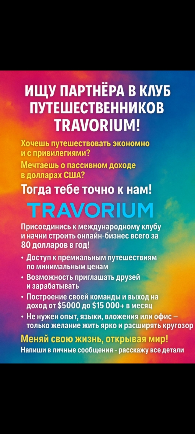 Ищу партнёра в клуб путешественников Тravorium.