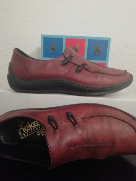 Туфли Rieker — сочетание максимального удобства, бордовый цвет ,кожа нат.,dекоративные элементы, резинка в подъеме, танкетка- 42 размер