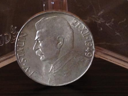 Монета выпущена 21 декабря 1949 года в Чехословакии, в честь дня рождения Иосифа Виссарионовича Сталина. Таких монет было выпущено всего несколько штук. Это монета будет большим эксклюзивном для любого коллекционера.