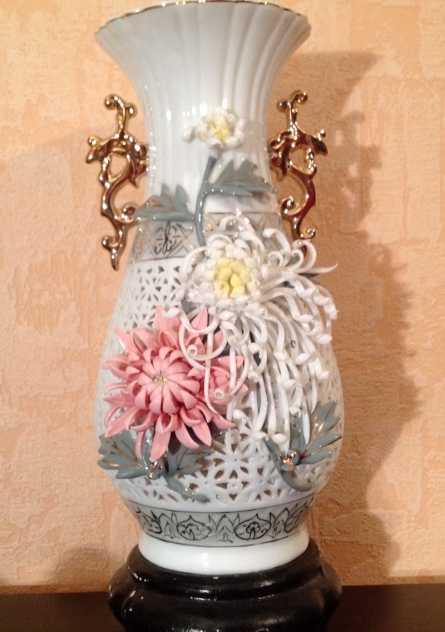 Тончайший фарфор ручной работы. Ваза смотрится просто великолепно. Цветы как живые и и все это сделано руками искусных Китайскими мастерами. Украсит любой уголок вашей квартиры!