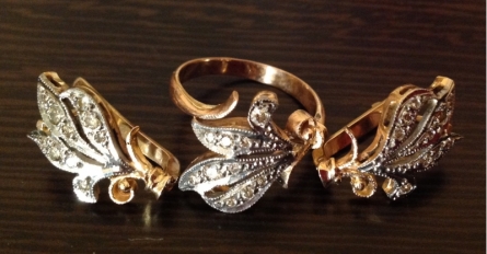Эта двойка была выпущена ювелирным заводом в единственном экземпляре. Золото 583 пробы. 30 бриллиантов. Очень красивые и элегантные. Бриллианты чистой воды.