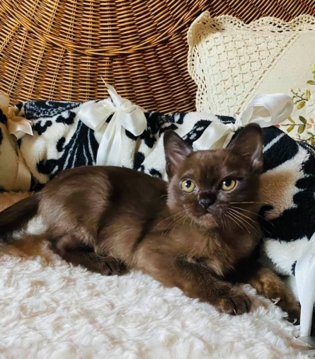 Американская бурма мальчик по имени Disney в окрасе соболь родился 15 апреля от производителей чемпионов породы, готов переехать в Испанию после 15 июля. Документы о происхождении, паспорт, чип, вакцинация.