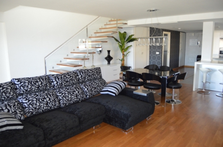 В апартаментах 2 этажа (дуплекс), 2 спальни и 2 ванные, гостиная, кухня со всей техникой, терраса, а также гостевой сан узел. Общая площадь около 100 м2, есть машиноместо в подземном паркинге. Аппартаменты находятся на 2 этаже, есть лифт (прямо из паркинга можно подняться на лифте)....