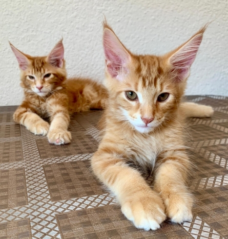 Помет мейн-кунов в Аликанте. 3 самки и 2 самца, все с удивительным тигровым рисунком рыжего окраса. Родились 19.05.2024. Идеальны для тех, кто ищет крупного, элегантного и ласкового питомца. Более подробная информация по Whatsapp