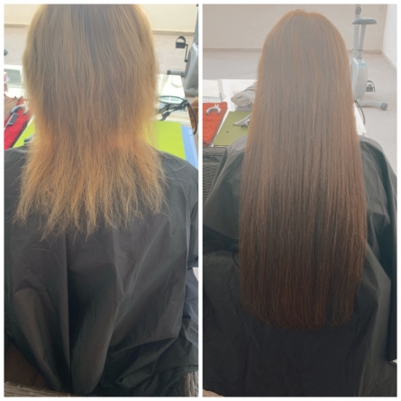 МИКРОКАПСУЛЬНОЕ наращивание волос, коррекция, подбор волос. Процедура не травматична и не создает сильного натяжения родным прядям.