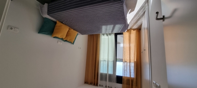 Строительство объекта было завершено в августе 2024 года. В апартаментах две спальни и две ванные комнаты, гостиная с полностью оборудованной кухней открытой планировки и электрические жалюзи на окнах. Общая площадь 73 кв.м